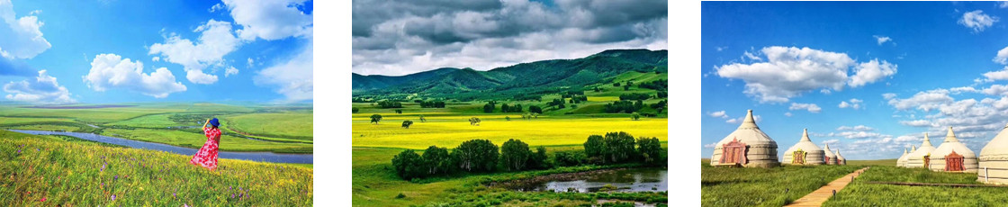 大家準(zhǔn)備好驅(qū)車前行草原景觀路,一路邊玩邊行,成群的牛羊映入眼簾,7月—8月末會(huì)看到大片金黃的油菜地,藍(lán)天、白云、綠草地、金黃的油菜地是很多拍婚紗外景的取景地。沿途一望無際的呼倫貝爾草原,成群的牛羊;可與畜群自由攝影, 此段是呼倫貝爾草原的腹地,伊利黃金牧場(chǎng),隨停隨走,體會(huì)大自然帶給我們的樂趣;后到莫日格勒草原,它位于被老舍先生譽(yù)為"天下第一曲水”的莫日格勒河畔。這里有豐富的蒙古文化,可以多方面了解蒙古族的歷史,這里是電影《尋龍?jiān)E》的取景地,也是爸爸去哪兒的拍攝地;莫日格勒河畔自由漫步,可以從小路繞到景區(qū)后山,這也是看莫日格勒河的最好位置。下午返回海拉爾,游覽海拉爾市區(qū),自由活動(dòng)。