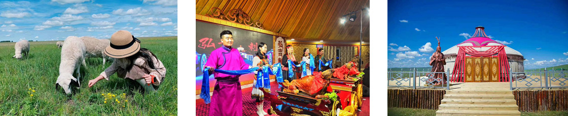 滿洲里出發(fā),讓“草原牧羊娃”們更了解呼倫貝爾史前文明;【猛犸象遺址博物館】是以文化為主題,是集觀光休閑、運(yùn)動(dòng)娛樂、民俗文化展示、環(huán)境保護(hù)等多功能為一體的旅游景區(qū)。二卡跨國(guó)濕地是蒙古祖先的發(fā)祥地,是抗戰(zhàn)時(shí)期的軍事要塞。是您家庭度假,感受家庭生活的最佳選擇;也是朋友聚會(huì),燒烤休閑的最佳去處;更是情侶拍攝婚紗照的圣地。今天的行程是體驗(yàn)呼倫貝爾大草原的絕佳地帶,此路線是中國(guó)和俄羅斯的邊境邊防公路,沿途也是呼倫貝爾保存最完好的一片草原,天高云淡,綠草無垠,牛羊滿山坡,牧民在馬背上揮動(dòng)著馬鞭,潔白的氈房里奶茶飄香,一路草原大好風(fēng)光,我們隨時(shí)停車讓大家盡情拍攝羊群、牛群、馬群,體驗(yàn)淳樸的蒙古豪情。我們可以更換民族服裝,更真實(shí)的感受蒙古族生活和生產(chǎn);老師講解擠牛奶的常識(shí)及步驟,并帶領(lǐng)及孩子們可以親身體驗(yàn)下擠牛奶的樂趣;“草原牧羊娃”可以拿著奶瓶親手喂養(yǎng)小羊,感受與小羊親密接觸的樂趣,中餐讓家長(zhǎng)和孩子們挑選新鮮的羊肉,并在老師的指導(dǎo)下現(xiàn)場(chǎng)烤全羊、煮手把肉,做好的美食回作為我們今天的餐食,美美的享受一頓自己做的草原風(fēng)味’;寶娃們可以草原拔河、撕名牌、觀日落等活動(dòng),黑山頭騎馬馳騁草原,策馬揚(yáng)鞭,任你撒歡大草原,傍晚觀草原最美日落,參加熱鬧的篝火晚會(huì)載歌載舞,黑山頭堪稱美麗的世外桃源,入住蒙古包,可以觀草原銀河星空,絕對(duì)在呼倫貝爾度過難忘的一夜!