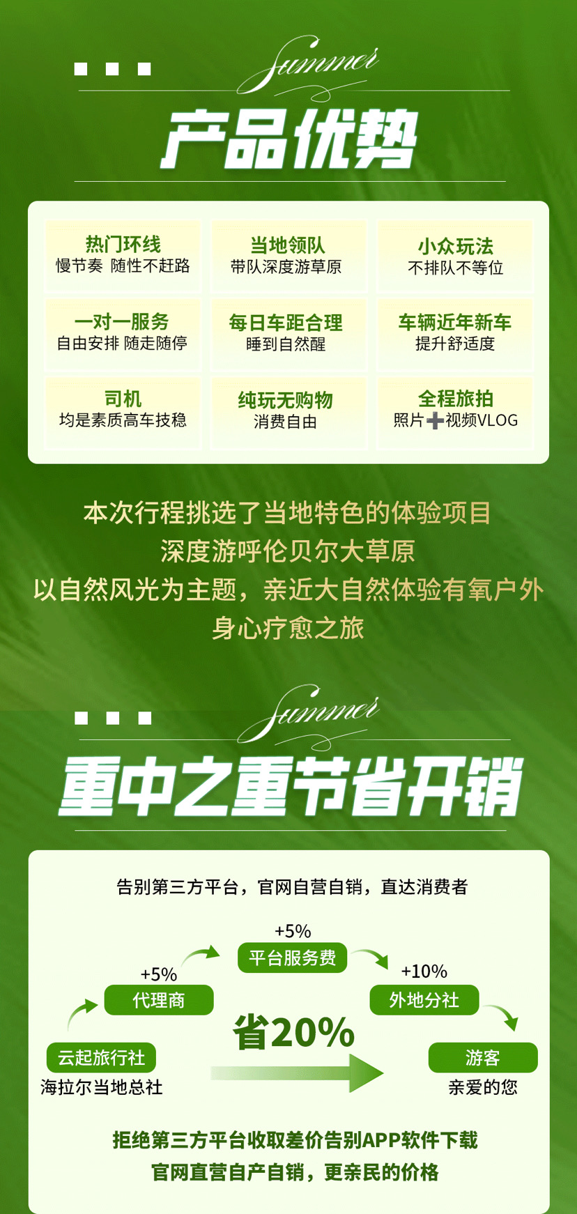 3.眾多好評(píng)口碑宣傳,我們專(zhuān)注戶(hù)外純玩原生態(tài)體驗(yàn)式旅行、行程為八字環(huán)線(xiàn)不走回頭路避免重復(fù)路程,會(huì)讓您的呼倫貝爾之旅不虛此行