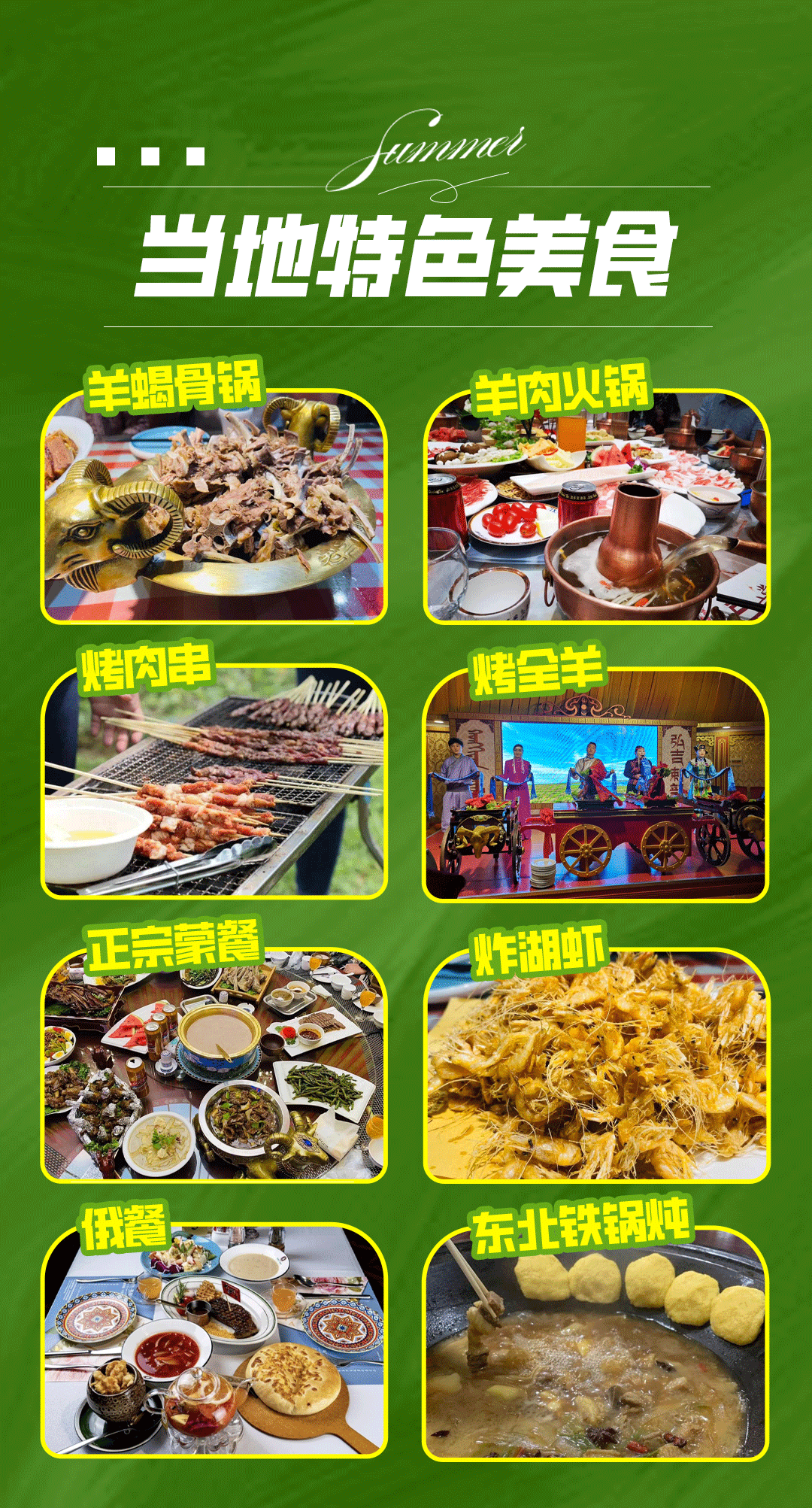 早餐:無(wú) 午餐/晚餐:自理  住宿:額爾古納市   用餐推薦特色手把肉、烤羊腿、羊排